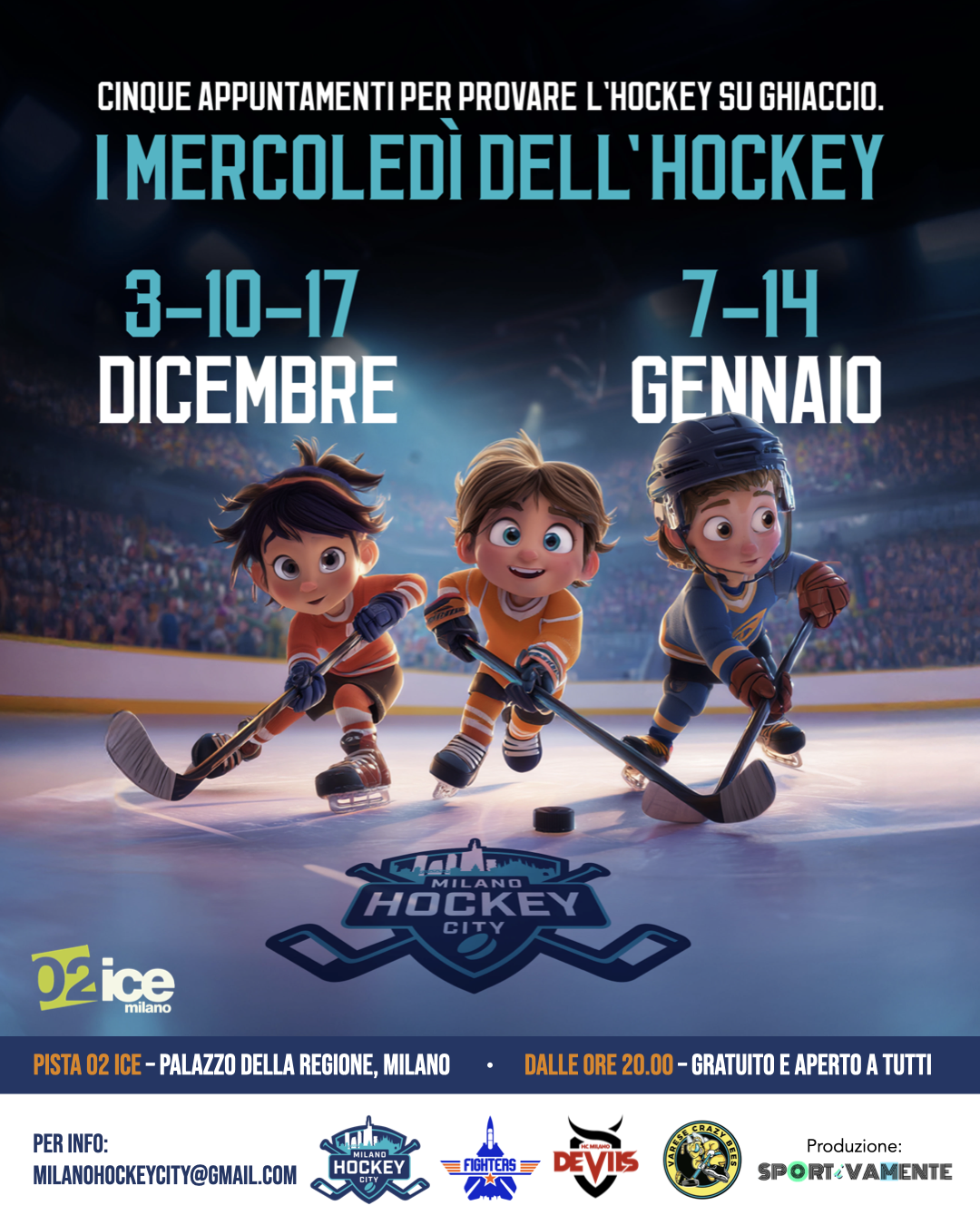 Milano Hockey City organizza l’attività grazie alla collaborazione con Pista 02Ice e con la produzione di Sportivamente. 🤜🤛 L’attività coinvolgerà diverse società sportive impegnate nella promozione dell’hockey su ghiaccio. 🏒🏒🏒